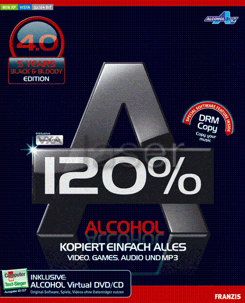 Alcohol 120%, is a powerful Windows CD and DVD burning software that makes it easy to create backups of DVDs* and CDs. In addition, the program lets you store your most used CDs as images on your computer, so you can call them up at the click of a button. Now includes Pre-Mastering function and support for Blu-ray format. Alcohol brings new meaning to the word multimedia! It is without a doubt a leader in its class, bringing the ability to emulate and record CDs and DVDs together into one amazingly easy to use software program. Now includes Alcohol Xtra